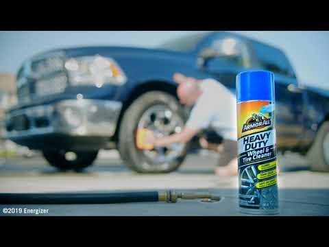 Armor All® Heavy Duty Wheel & Tire Cleaner helps you get your vehicle’s wheels clean with a fun-to-use spray that makes it easy to clean your car or truck’s wheels and leave them shining. Simply spray on and watch the foam change color from blue to white. Once it turns white, it’s finished loosening the brake dust and dirt. Rinse, dry and admire.